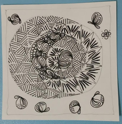 But actually, in the end, I am happy with how it came out overall! The magic of Zentangle...no mistakes--:)