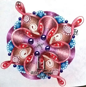 Thank you so much for the inspiration of doing new tangles! I did the first one with hearts and rings. Later I saw Maria and Rick doing a different variation and tried it in my notebook. I then did it...not exactly the same .... and am sending it too.