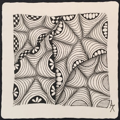 After two weeks of missing out on "classic Zentangle originals" (it's just been a busy time) I was determined to finish a tile this week. I do love the original tangles, and I especially loved this original string!
