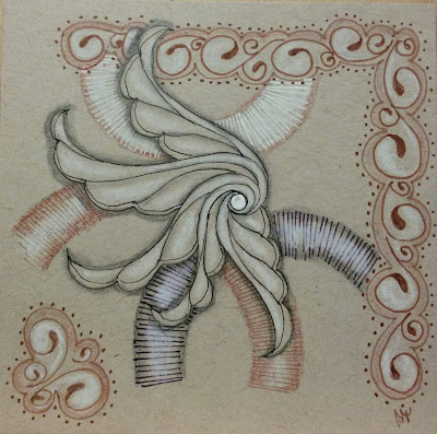...this was really a challenge for me. I never tangled Drawings. I tried again and again in different variations, but I am not really contented. It will be not better and so I send you this result. Your O is well, isn´t it? I like it and will use it every once in a while.Tangled Tidbits -