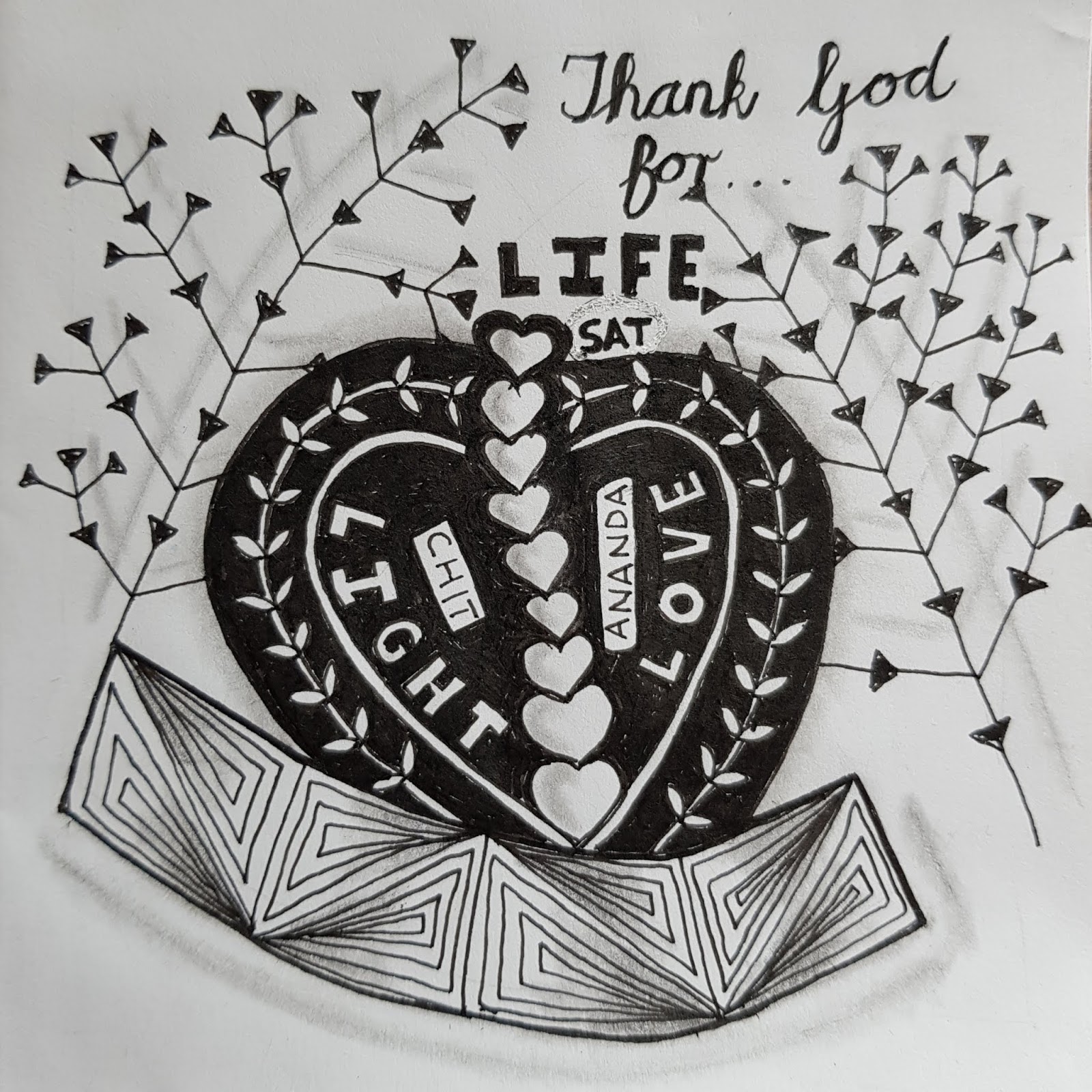 This is certainly a reflective time of year...counting one's blessings and giving thanks. And what a lovely idea to write the person or thing you're grateful for under the tangles. I took a more literal approach by writing in my big three in the ribbon-y areas and at the center of it all...the most important of all! Wishing you all lots of love!